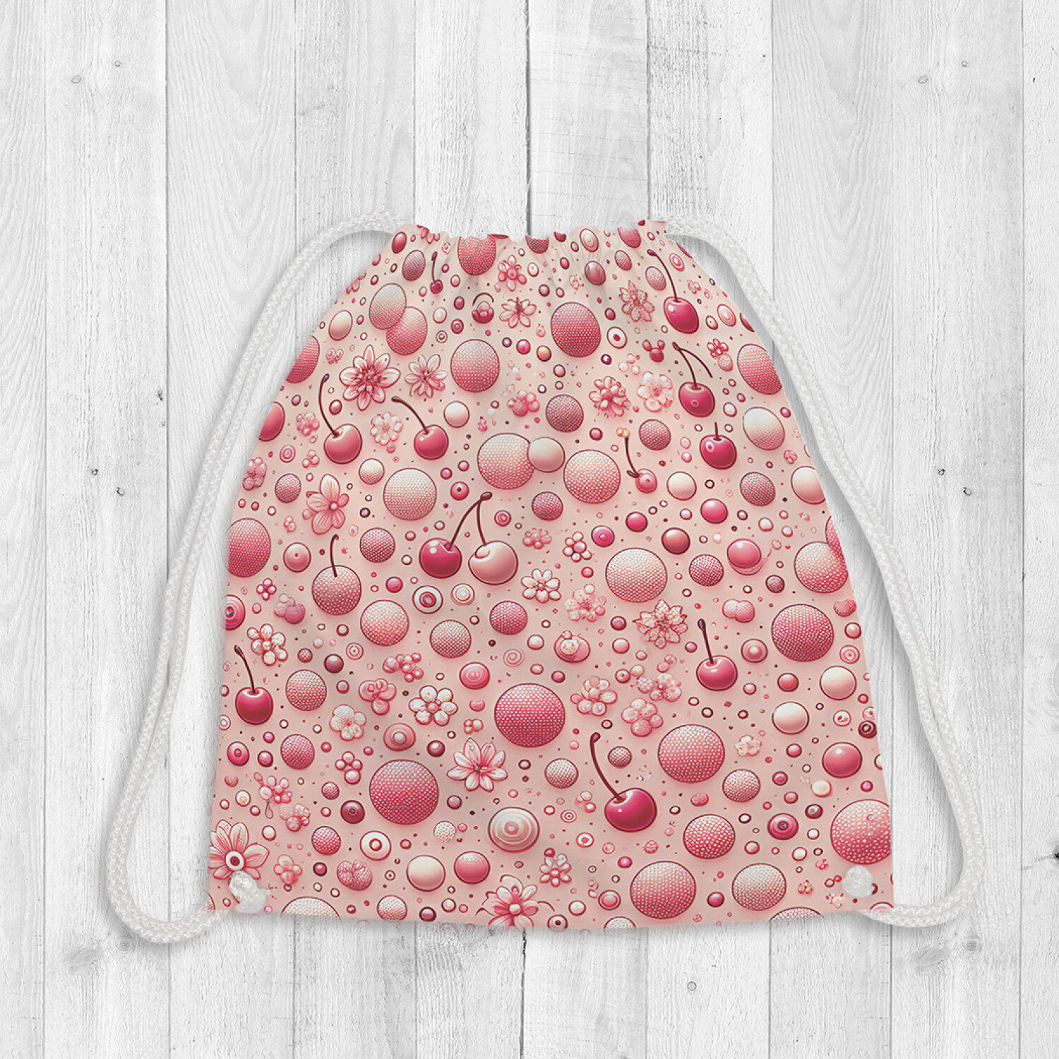 Сумка рюкзак-мешок для обуви и вещей с принтом "Ягодки и кружочки", JoyArty, 38x40см информация: