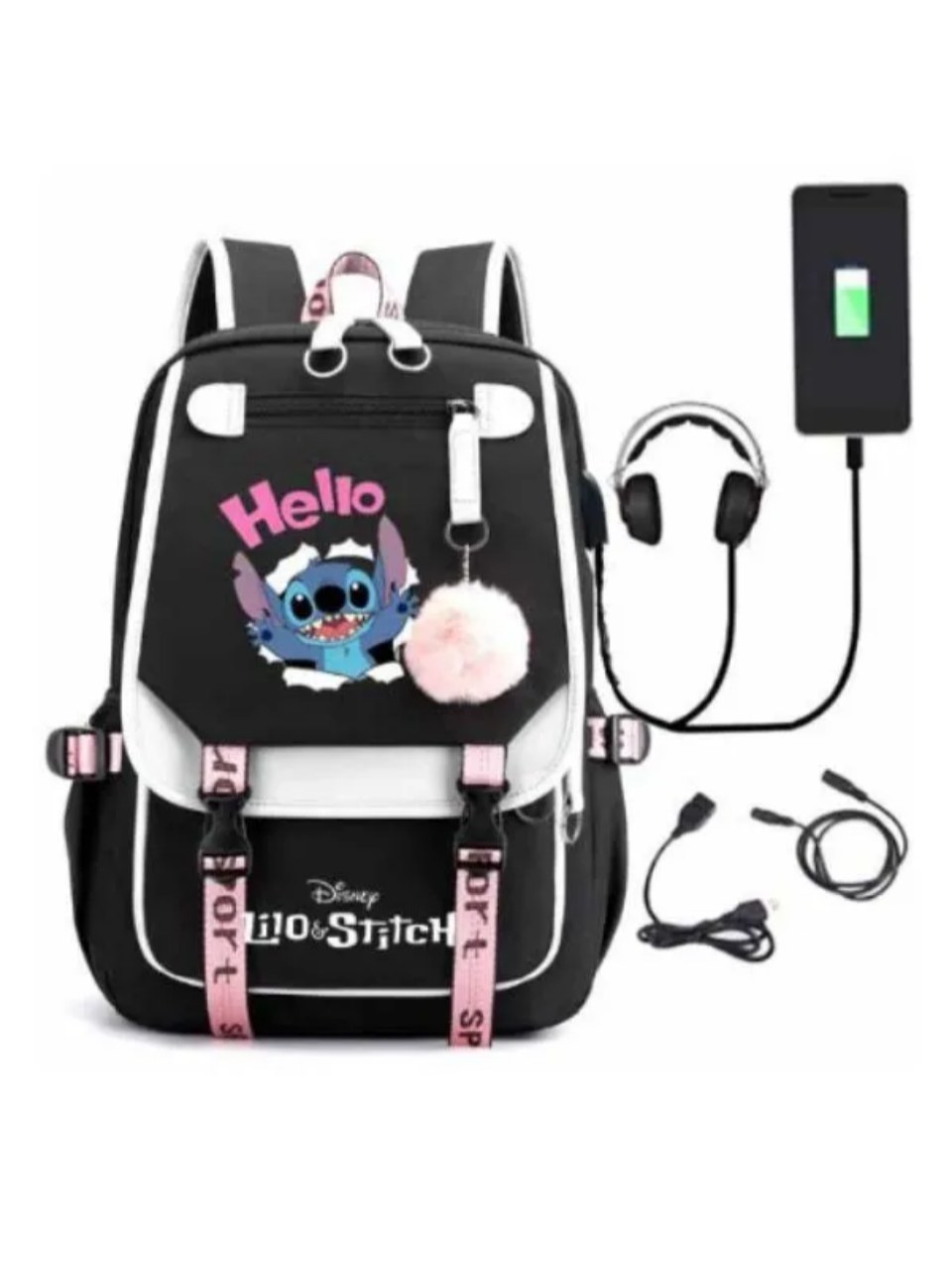 10 цен на Рюкзак "Лило и Стич", для девочек, с USB-выходом, 20 л, белый