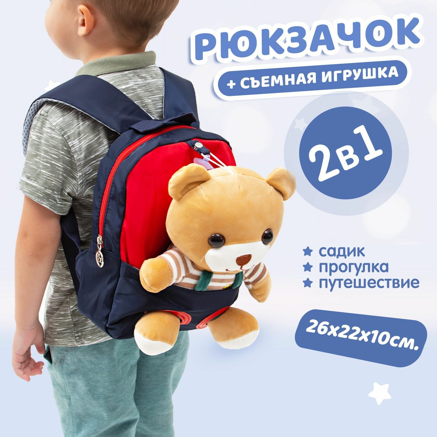 Рюкзак детский дошкольный для мальчика со съемной мягкой игрушкой Медведь информация: