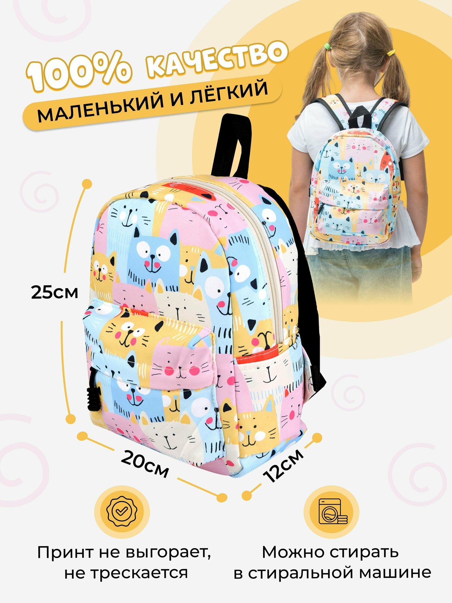 Рюкзак детский для девочек дошкольный с котятами TREND IDEA, цвет желтый информация: