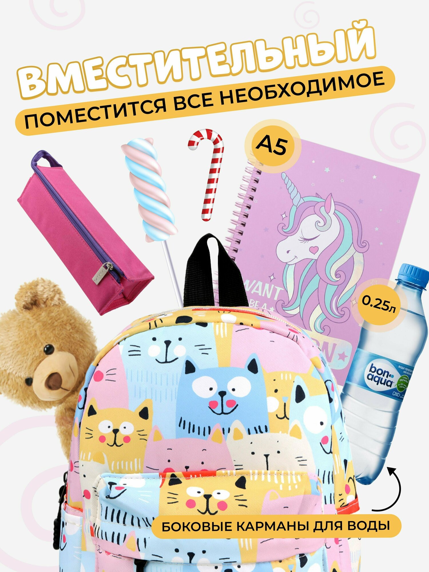 Рюкзак детский для девочек дошкольный с котятами TREND IDEA, цвет розовый 980 ₽