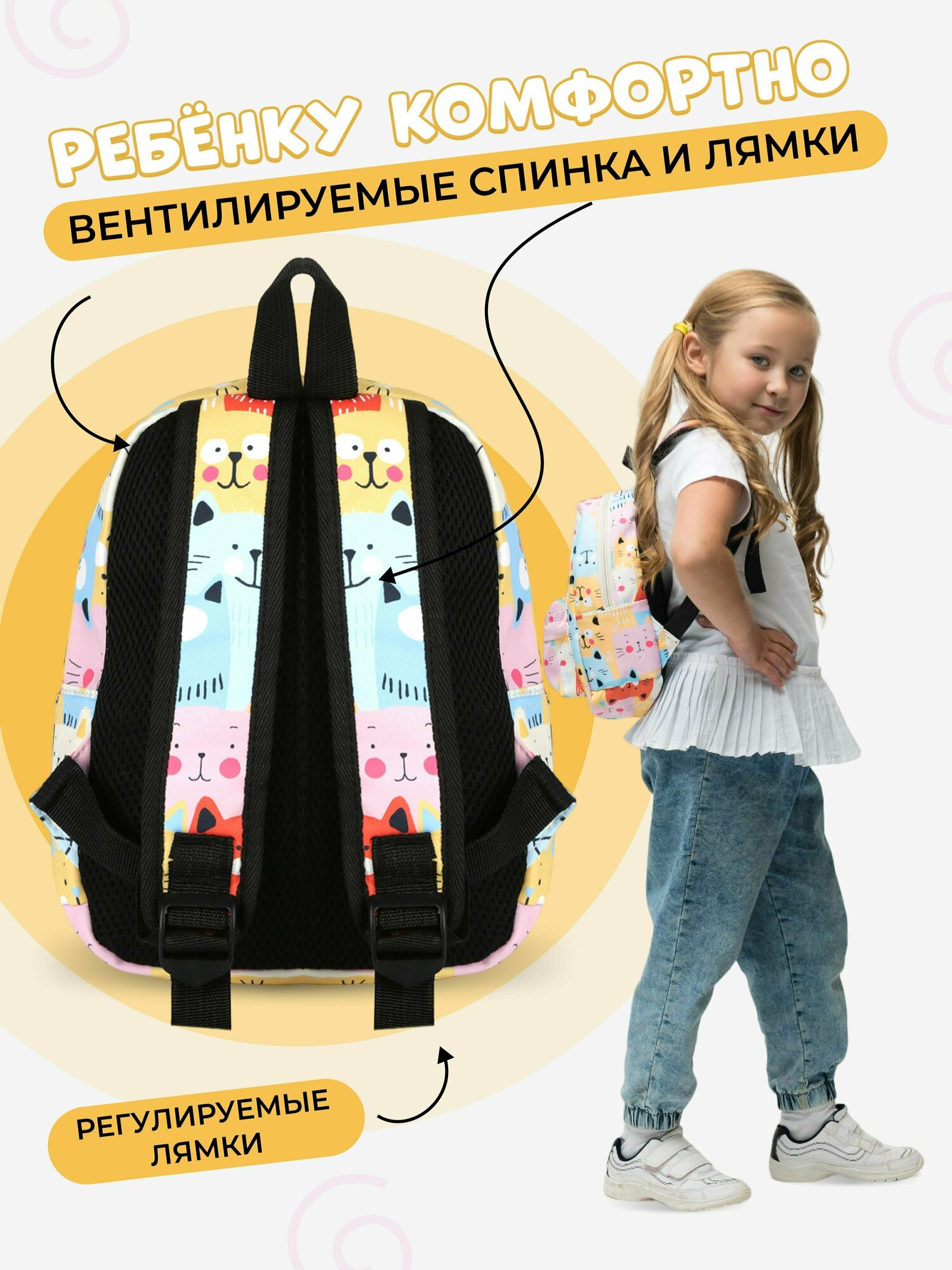 Отзывы на Рюкзак детский для девочек дошкольный с котятами TREND IDEA, цвет желтый