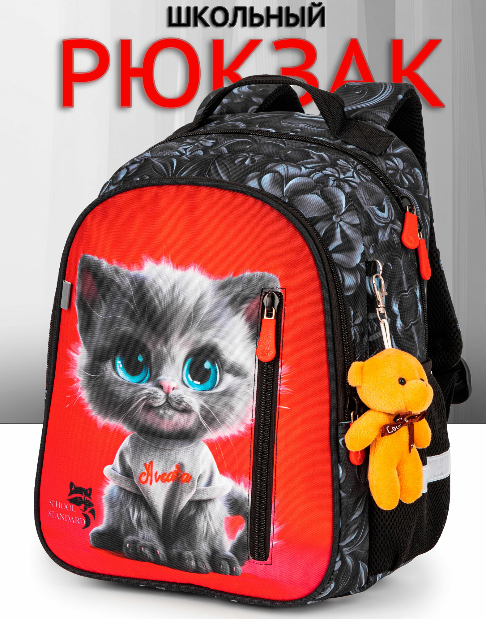 Рюкзак школьный 17 л для девочки начальной школы А4 анатомическая спинка + брелок, School Standard (Скул Стандарт) информация: