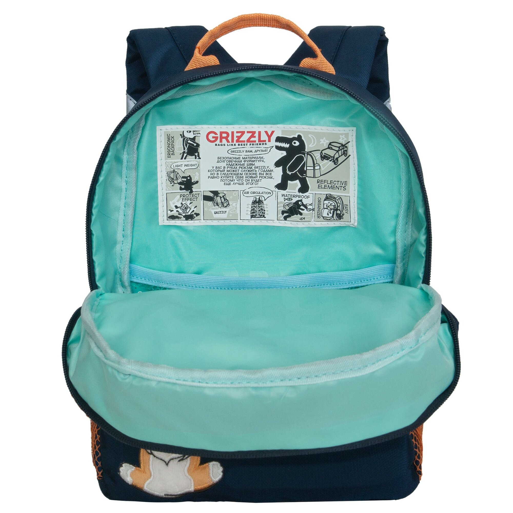 Рюкзак детский Grizzly, 22*28*10см, 1 отделение, 3 кармана, укрепленная спинка, синий (арт. 353541)