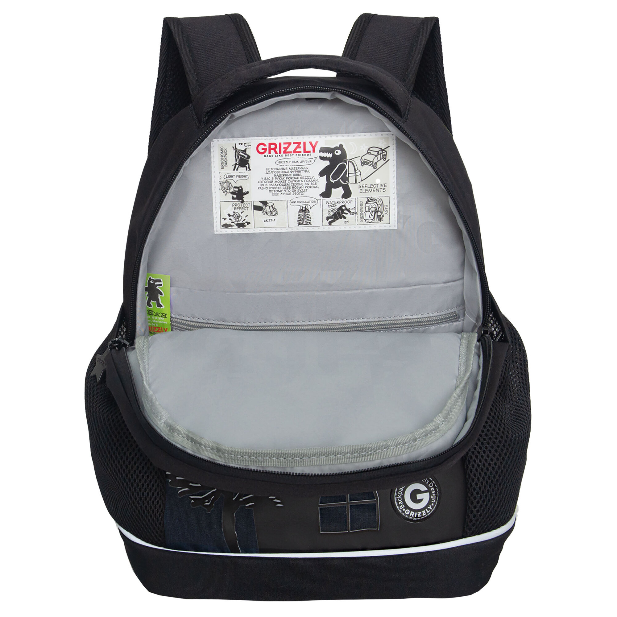 Ранец школьный формованный GRIZZLY с анатомической спинкой на ножках, для мальчика RAz-287-11/1