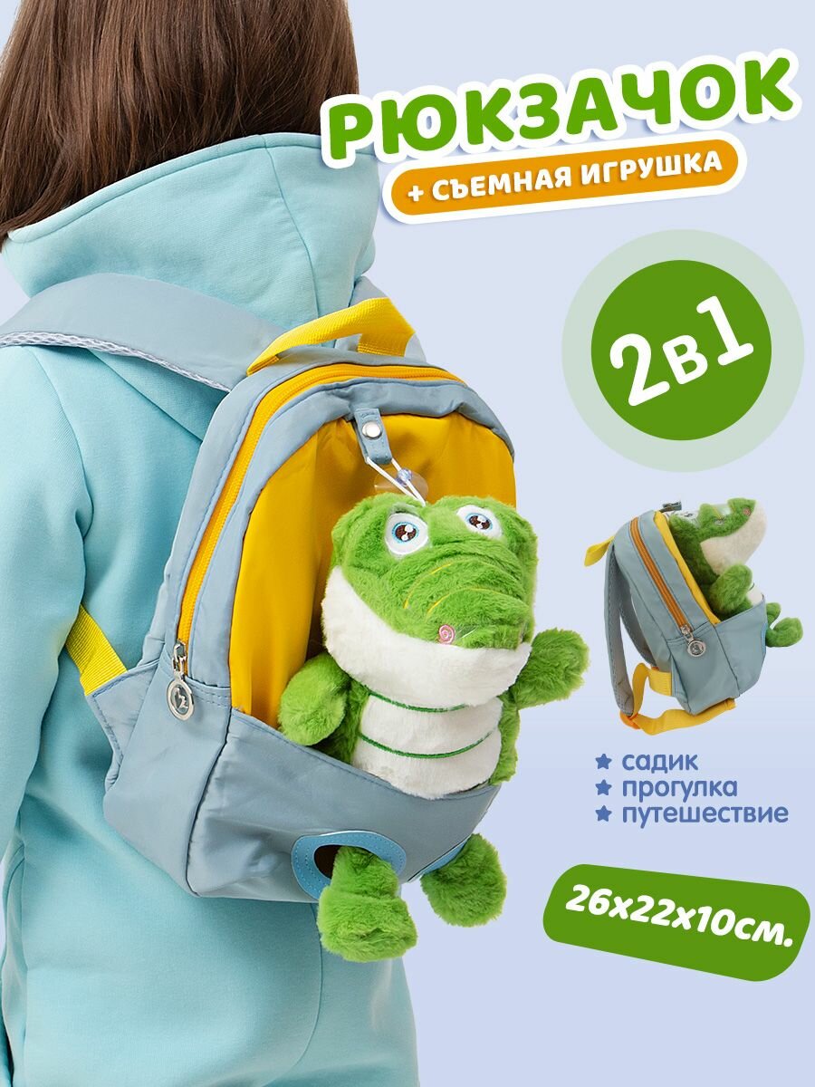 10 цен на Рюкзак детский с игрушкой Крокодил