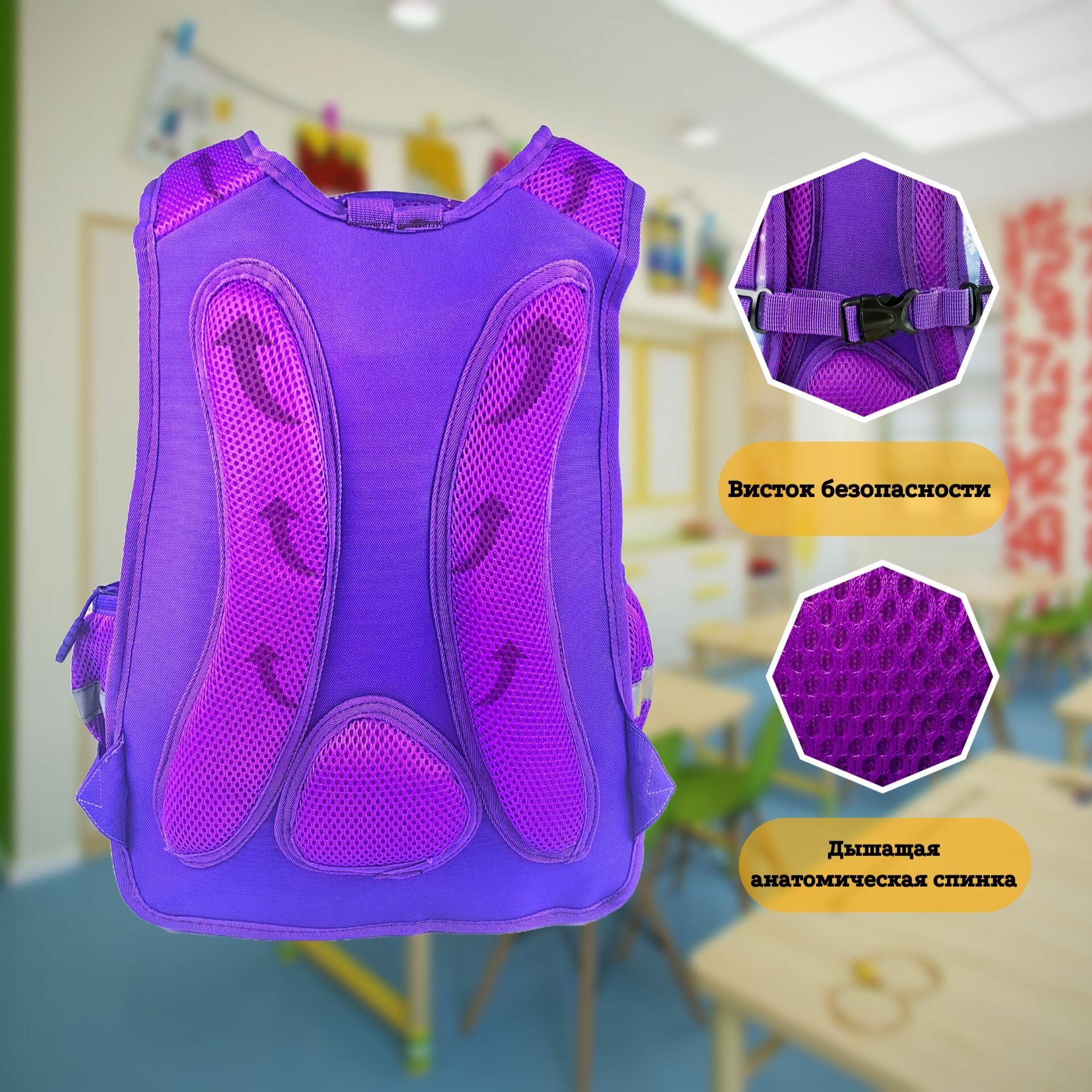 Рюкзак-ранец школьный с брелком "Радужная зебра" для девочки, 20л, 38*25*17 см, фиолетовый 1 999 ₽