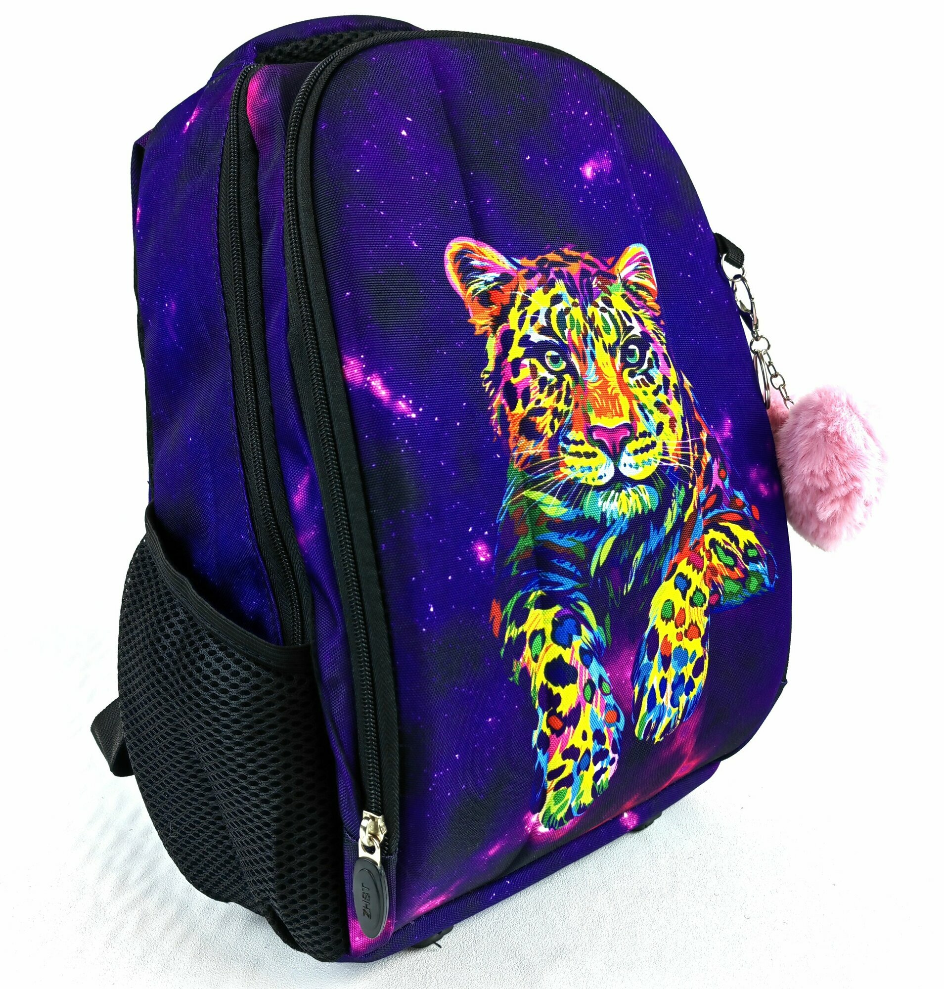 Рюкзак-ранец школьный с брелком "Радужный Тигр" для девочки, 20л, 38*25*17 см, фиолетовый информация:
