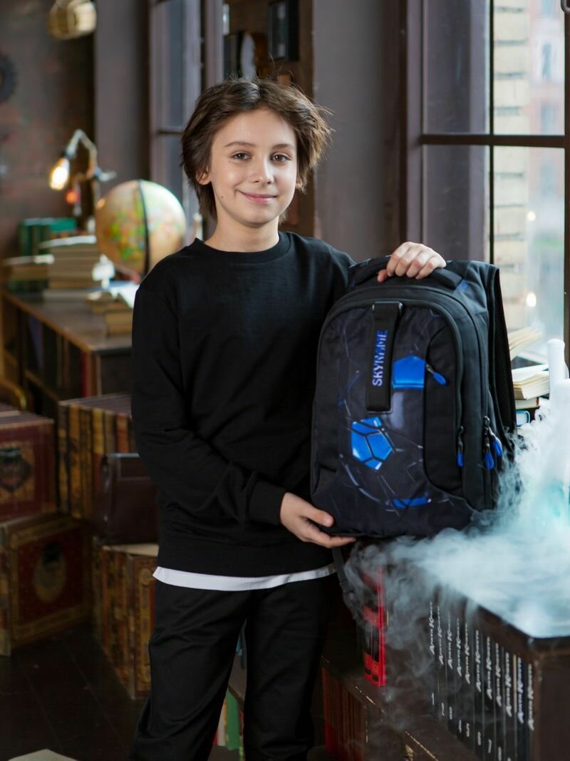 Рюкзак школьный для мальчика 17 л с анатомической спинкой SkyName (СкайНейм), со слотом USB и входом для наушников информация:
