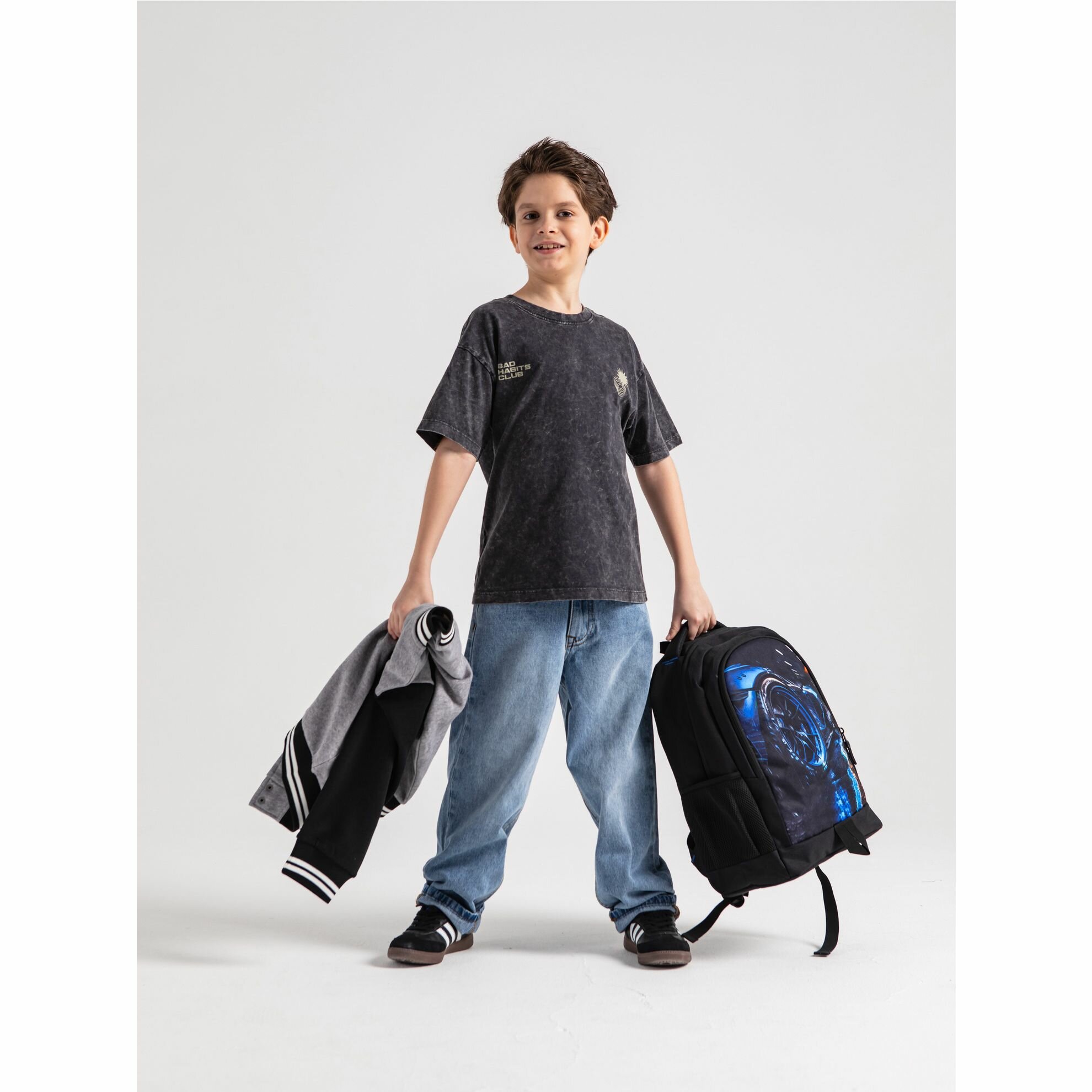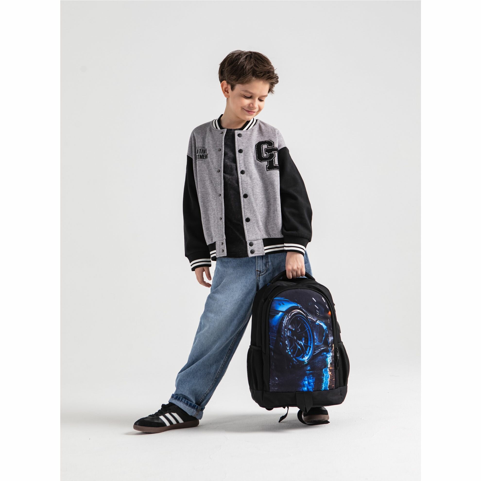 Рюкзак школьный GRIZZLY легкий с жесткой спинкой, двумя отделениями, для мальчика RB-451-3/1
