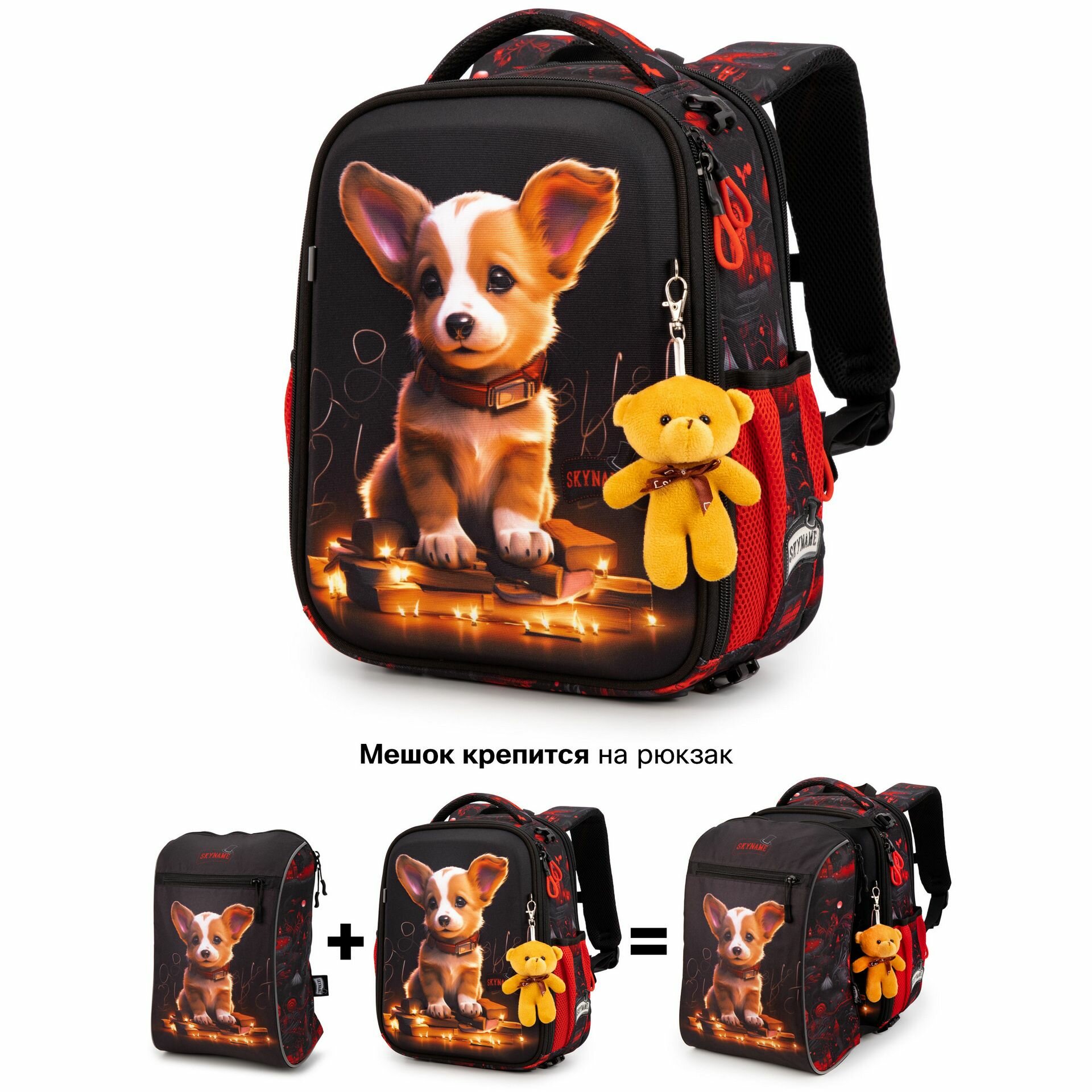 Рюкзак школьный для девочки начальная школа 17 л А4 анатомическая спинка + мишка и мешок для обуви, SkyName (СкайНейм) информация: