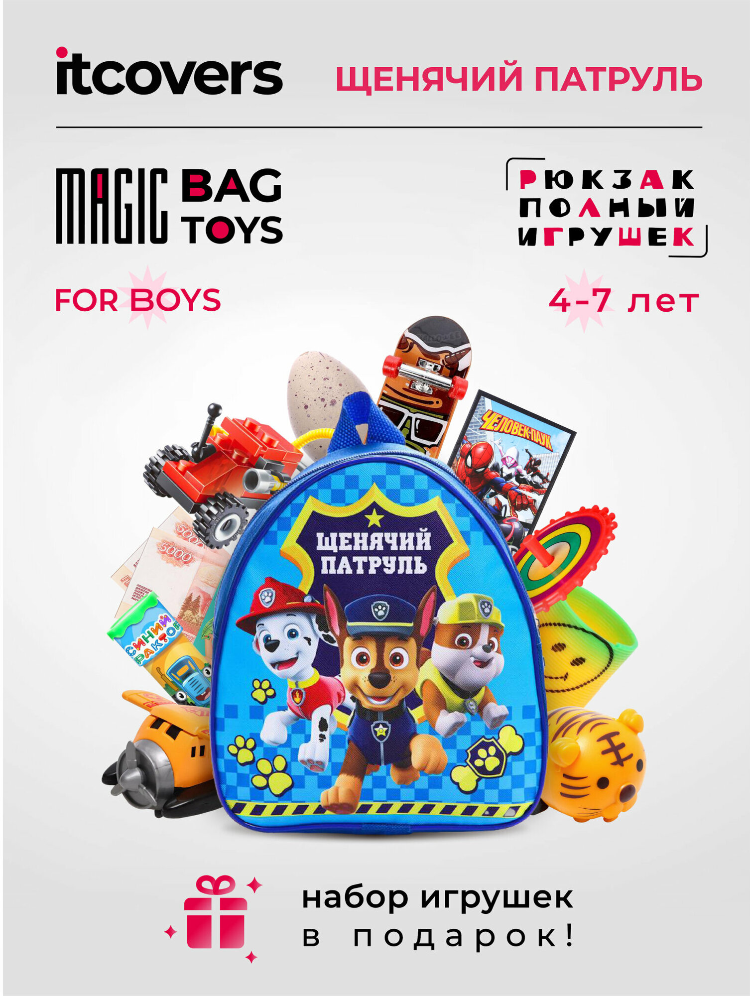 Рюкзак Щенячий патруль iTCOVERS Magic bag toys для мальчика 4-7 лет с набором игрушек информация: