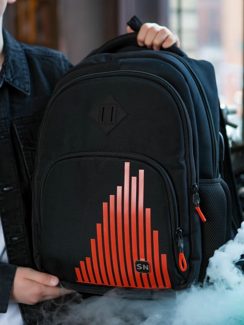 Рюкзак школьный для мальчика 20 л А4, черный для ноутбука городской анатомическая спинка + USB, SkyName (СкайНейм)