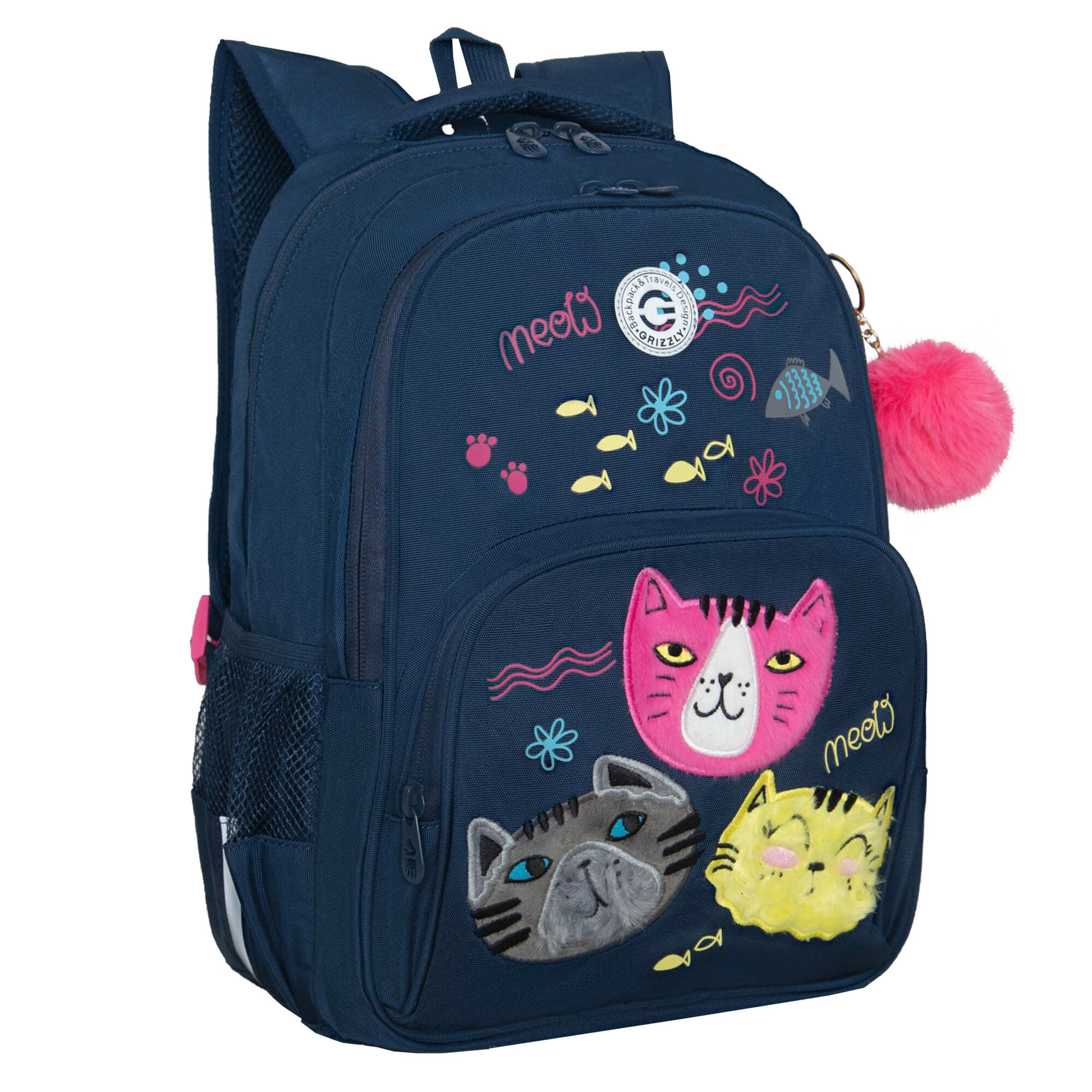 Рюкзак детский Grizzly, 22*28*10см, 1 отделение, 3 кармана, укрепленная спинка, синий (арт. 353541)
