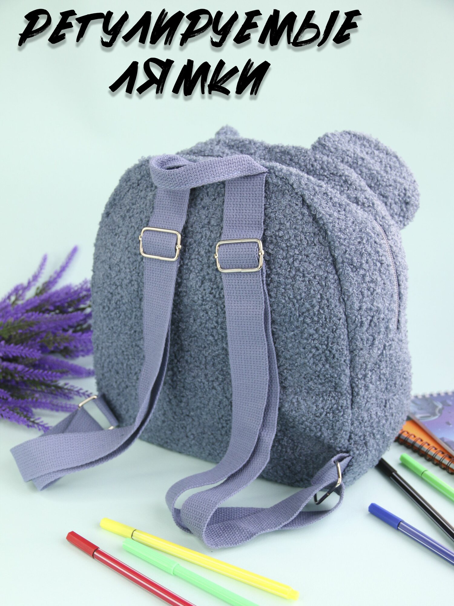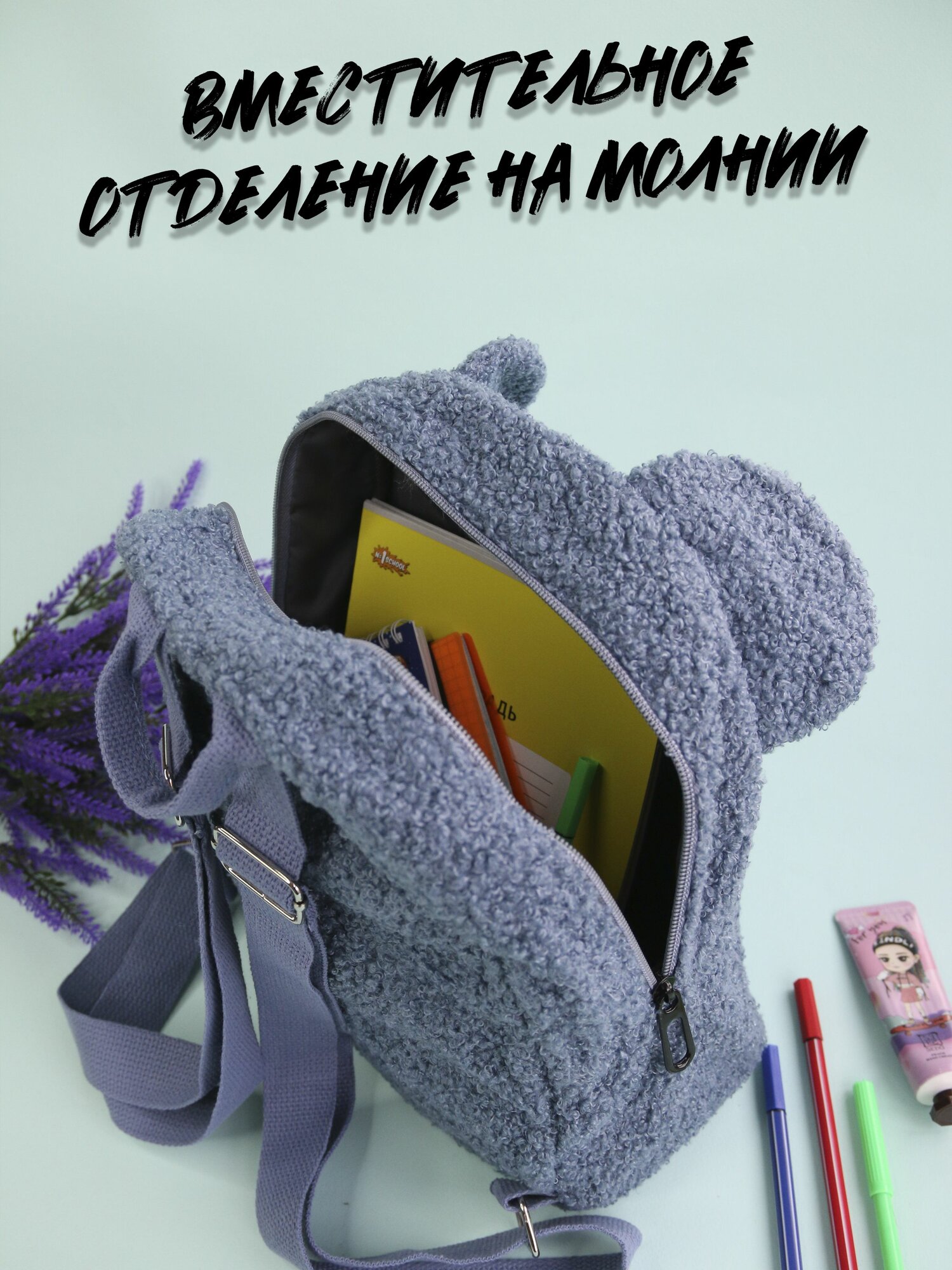 Рюкзак женский маленький городской ранец плюшевый с ушками медвежонок синий информация: