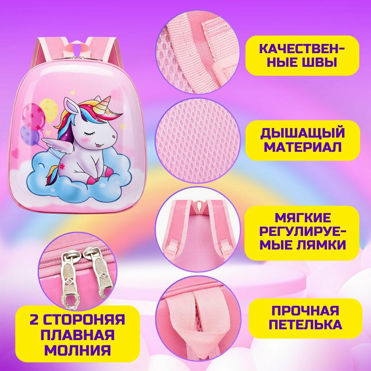 Рюкзак детский для девочек Единорог розовый, Детский рюкзак для девочки в садик информация: