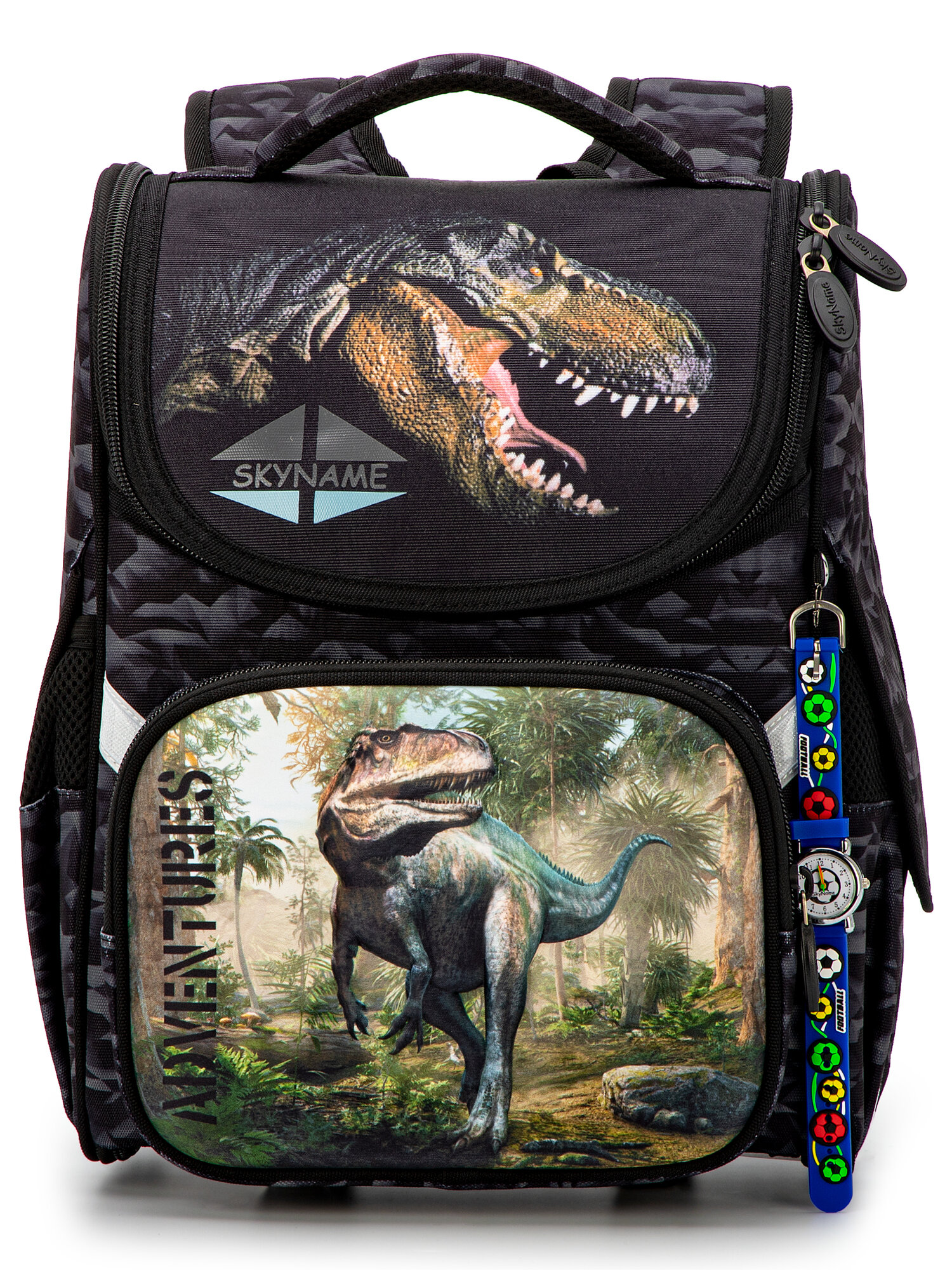 10 цен на Ранец школьный для мальчика 15 л с анатомической спинкой SkyName (СкайНейм) с брелоком-часы