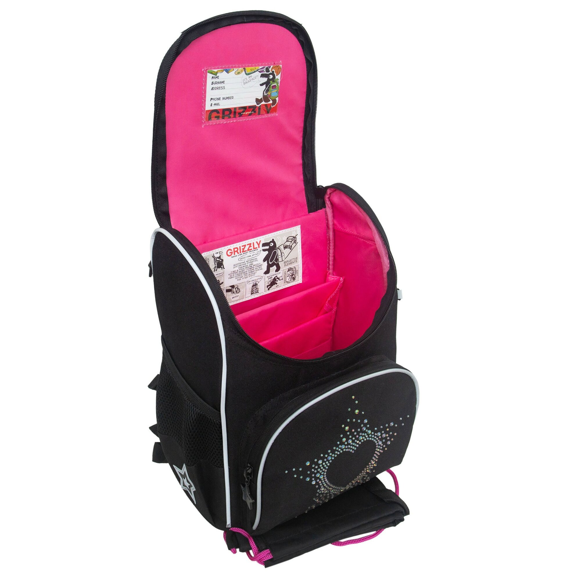 Ранец школьный GRIZZLY суперлегкий с анатомической спинкой, на ножках, с мешком для обуви, для девочки RAm-484-7/1 информация: