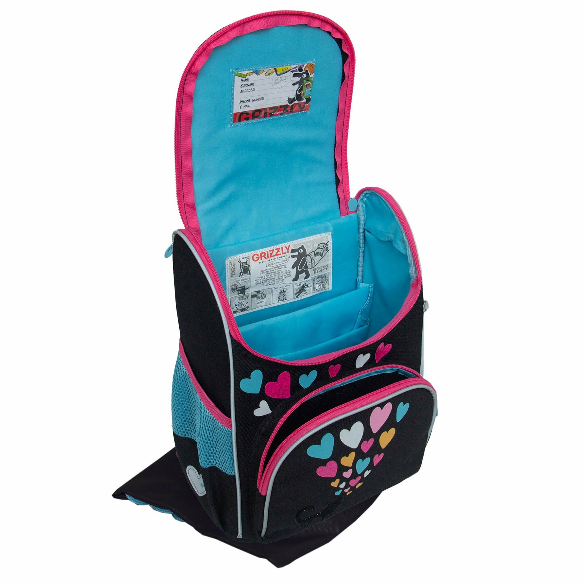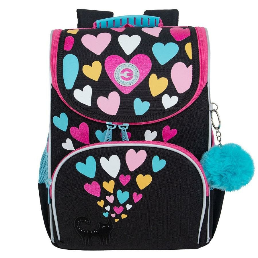 Ранец школьный GRIZZLY суперлегкий с анатомической спинкой, на ножках, с мешком для обуви, для девочки RAm-484-2/1 информация: