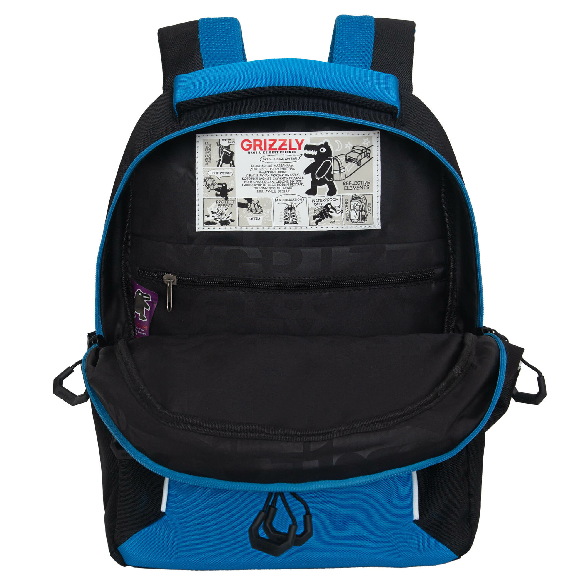 Рюкзак детский Grizzly, 22*28*10см, 1 отделение, 3 кармана, укрепленная спинка, синий (арт. 353541)