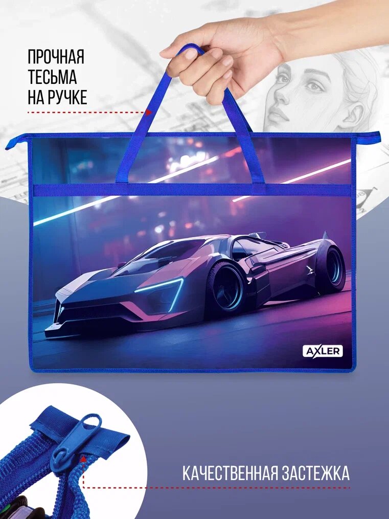 Папка А3 AXLER с ручками, для рисования, сумка для художников, рисунков, на молнии, пластик информация: