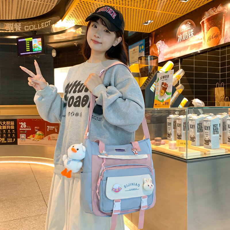 Сумка-мессенджер, для учениц начальной и средней школы, синяя, с подвеской в виде уточки 1 082 ₽