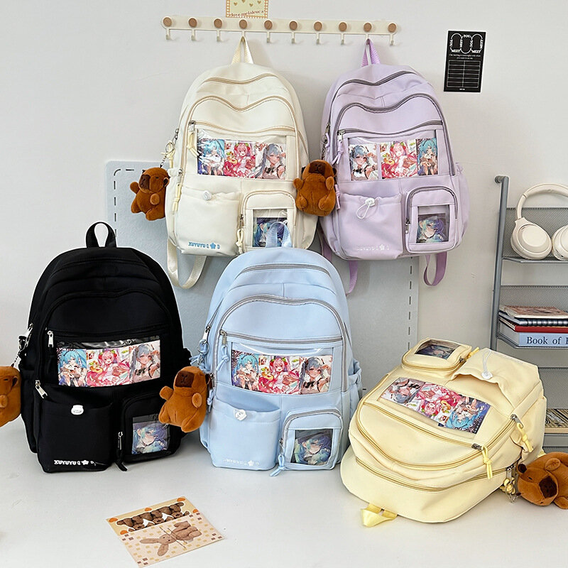 Сумка школьная Ins, белая, двойная спинка, с подвеской 1 171 ₽