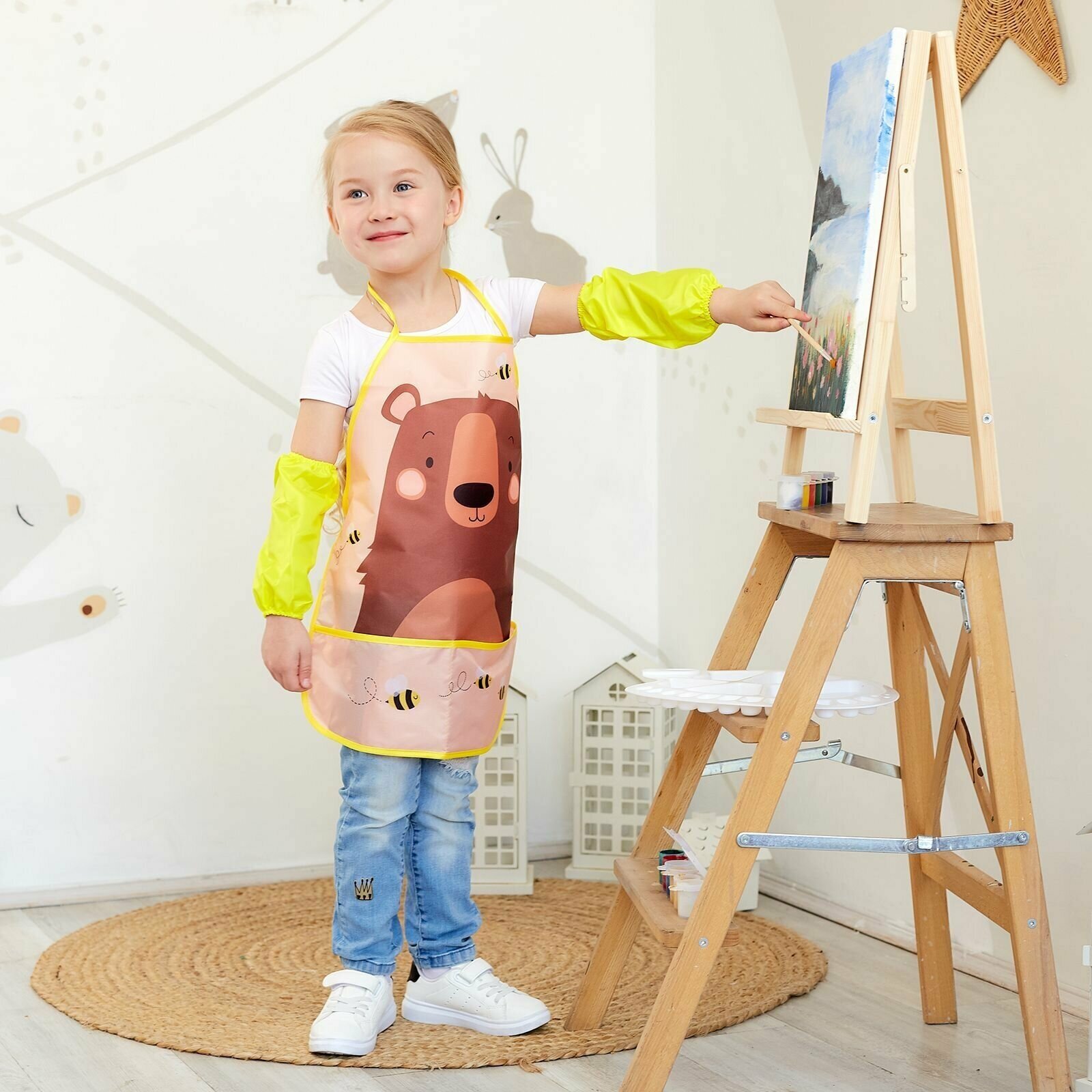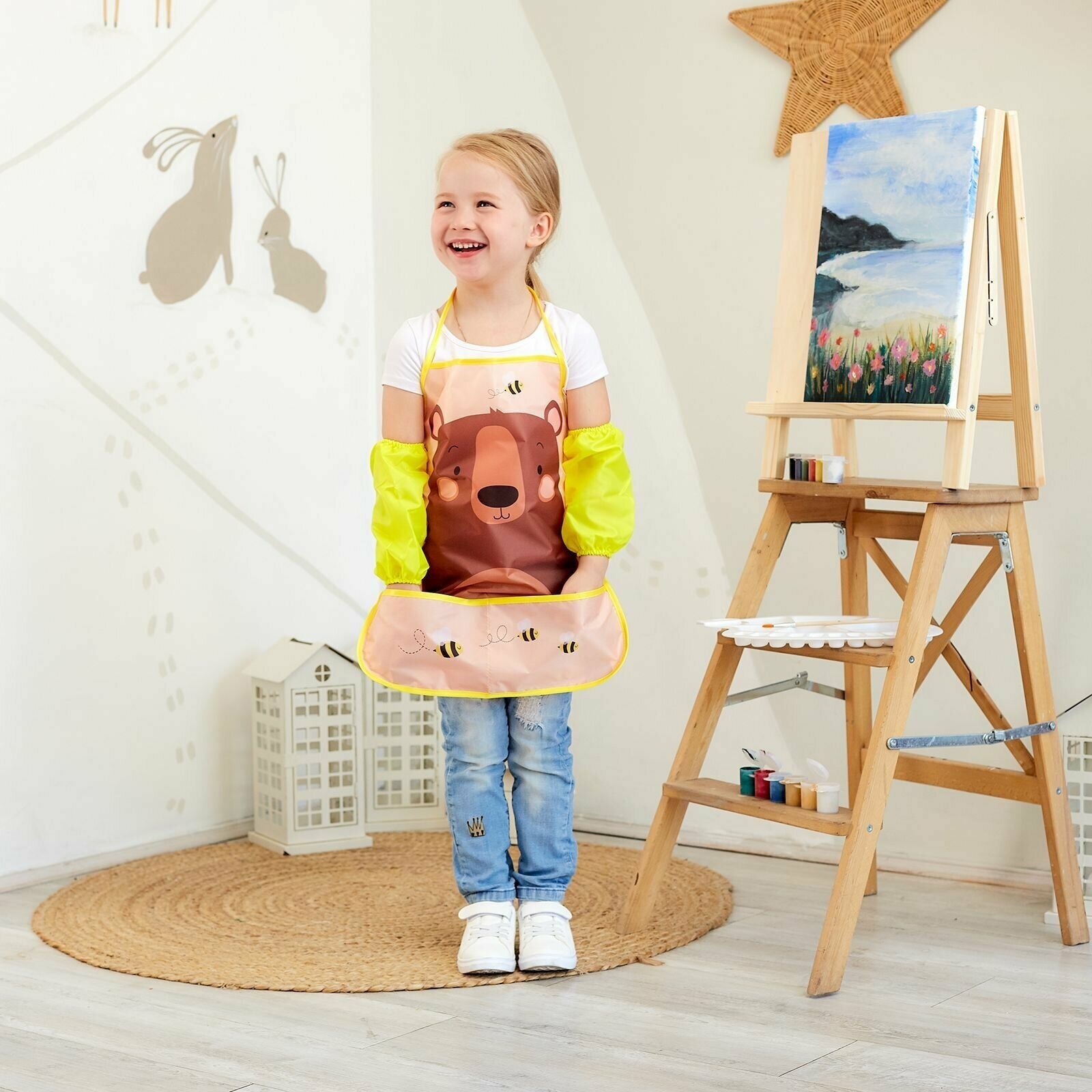 Фартук детский 49х39, для творчества Этель "Мишка", с нарукавниками, на завязках, цвет жёлтый информация: