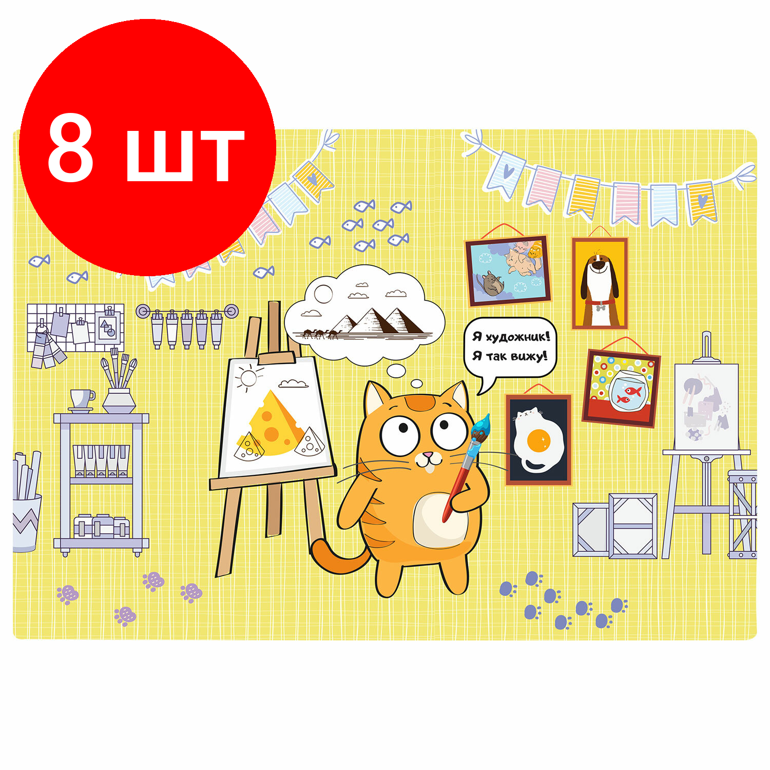 10 цен на Комплект 8 шт, Настольное покрытие BRAUBERG KIDS для труда и творческих занятий, ПВХ, "Artist", 50х35 см, 272358