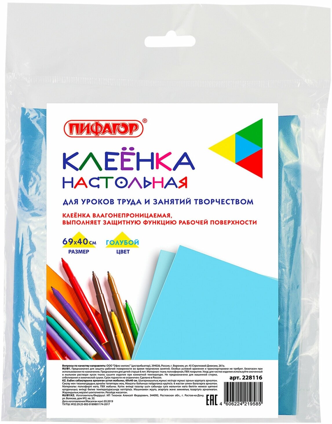10 цен на Клеёнка настольная для уроков труда, ПВХ, голубая, 69×40 см