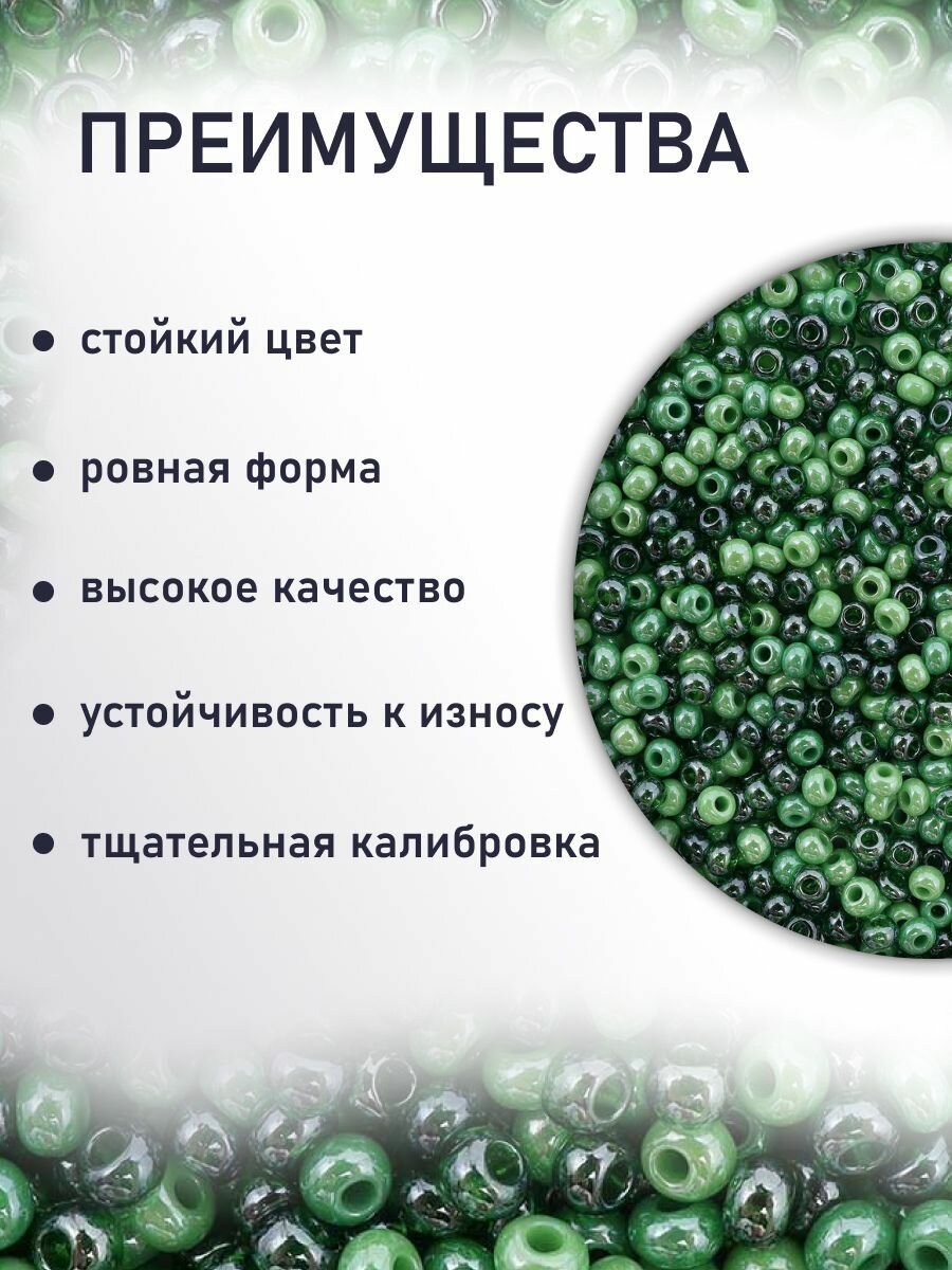 Бисер чешский Preciosa 10/0 (2,3 мм), 20 г, 4 цвета, ассорти № 11 (темно-зеленый металлик) информация: