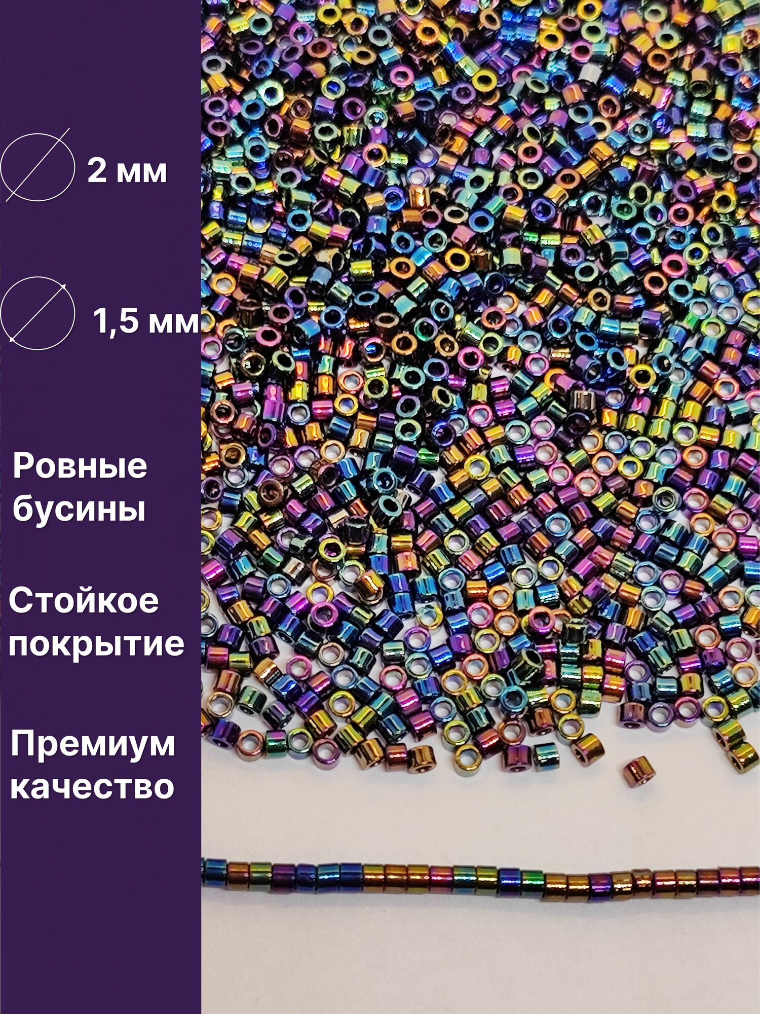 Отзывы на Бисер MIYUKI Delica 10 ГР №10/0 Миюки Делика цилиндрический 2 мм цвет хамелеон гальваническое покрытие премиум качество