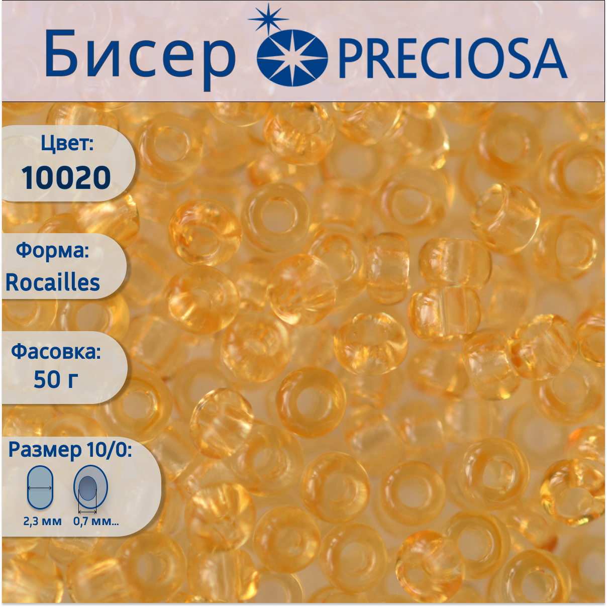 10 цен на Бисер Чехия Preciosa, 10020, стекло, прозрачный, 10/0, круглое отверстие, 50 г, янтарь