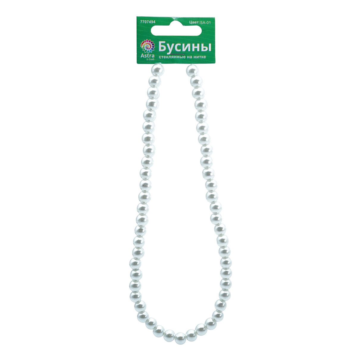 Бусины для рукоделия стеклянные на нитке, 8 мм, длина 40 см, Astra&Craft (SA-01 белый-жемчуг), 5 шт информация: