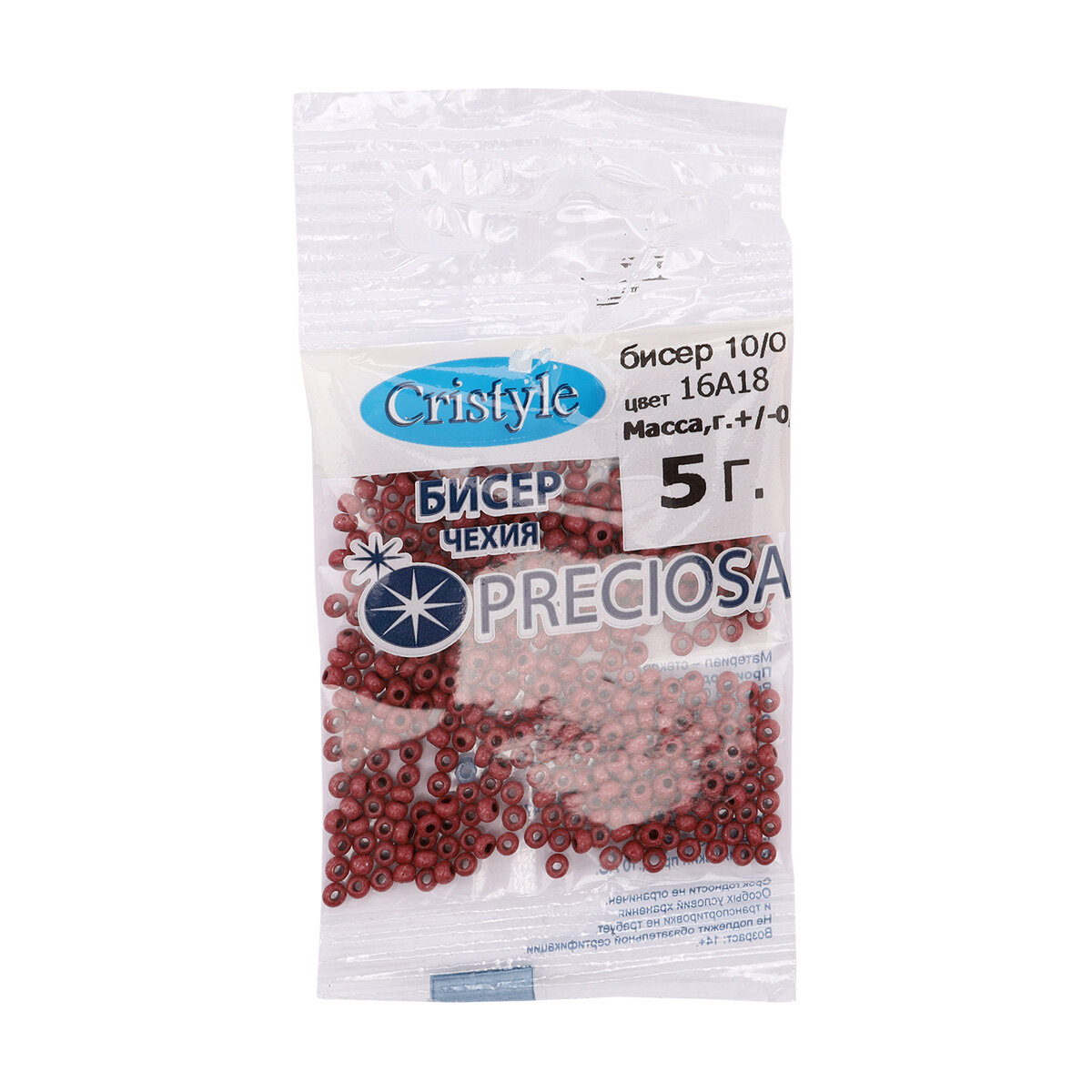 Бисер чешский Preciosa 10/0 (2,3 мм), цвет № 16A18, 5г*10 упак информация: