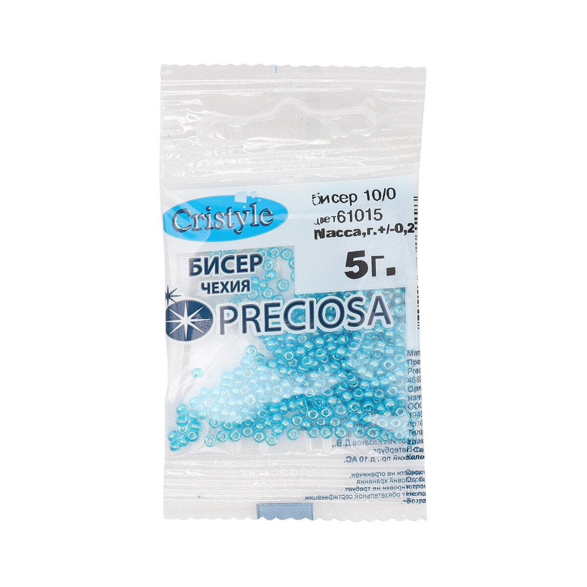 Бисер чешский Preciosa 10/0 (2,3 мм), цвет № 61015, 5г*10 упак информация: