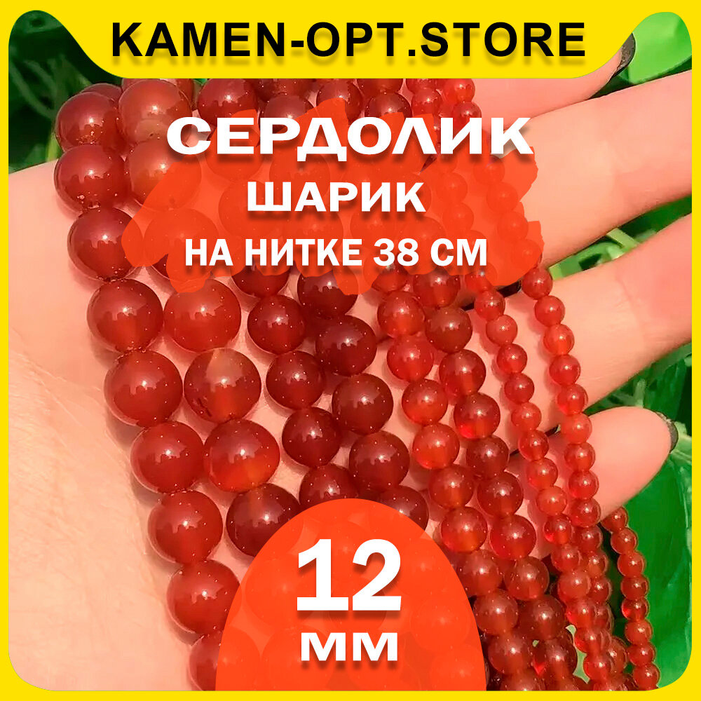 10 цен на KamenOpt / Сердолик бусины шарик 12 мм, на нитке 38 см из натурального камня