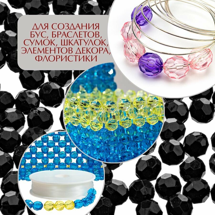 10 цен на Бусины прозрачные граненые "Шар" 8 мм, черные AD 45, 40 гр./175 шт.