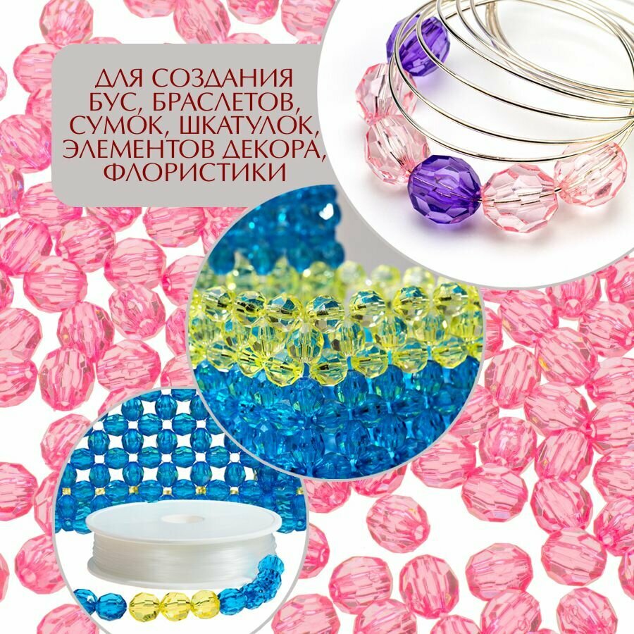 10 цен на Бусины прозрачные граненые "Шар" 8 мм, розовые AD 02, 40 гр./175 шт.