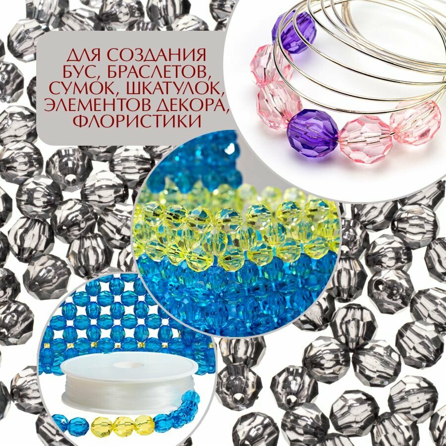 10 цен на Бусины прозрачные граненые "Шар" 8 мм, темно-серые AD 25, 40 гр./175 шт.