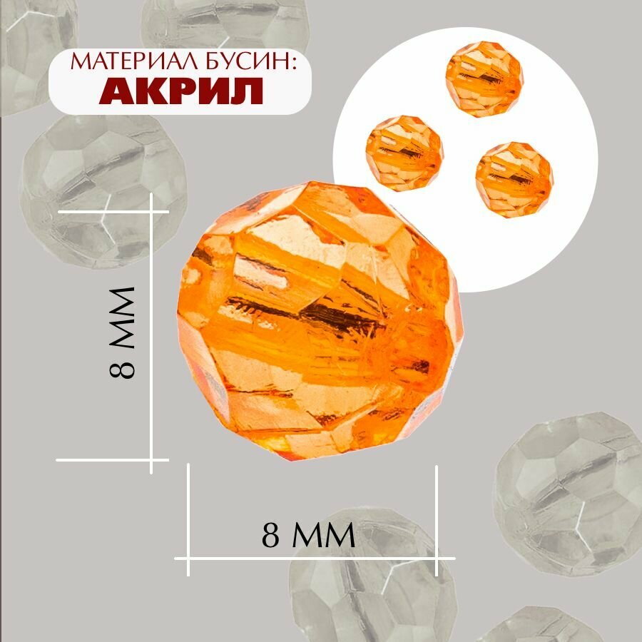 Отзывы на Бусины прозрачные граненые "Шар" 8 мм, оранжевые AD 22, 40 гр./175 шт.