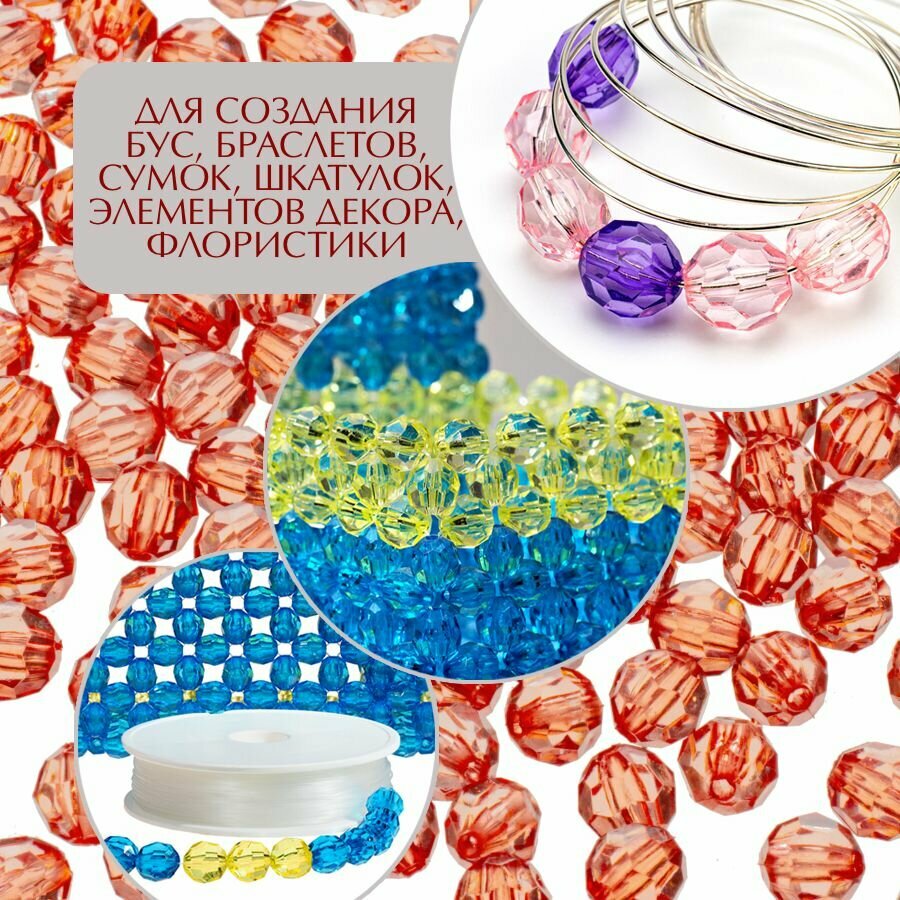 Бусины прозрачные граненые "Шар" 8 мм, оранжевые AD 22, 40 гр./175 шт. 348 ₽