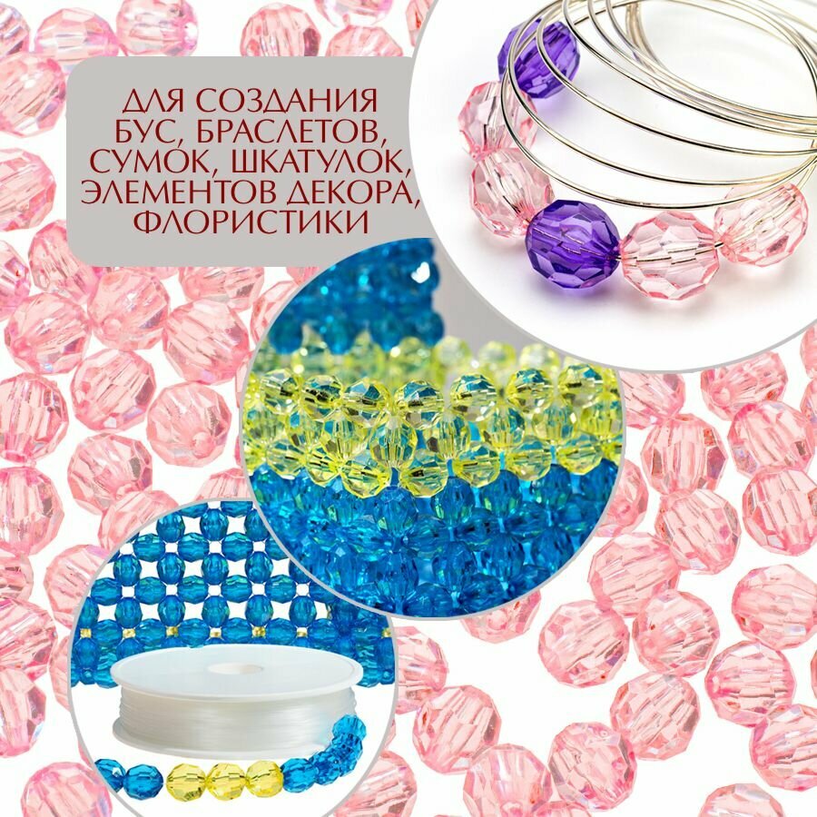 10 цен на Бусины прозрачные граненые "Шар" 8 мм, розовые AD 42, 40 гр./175 шт.
