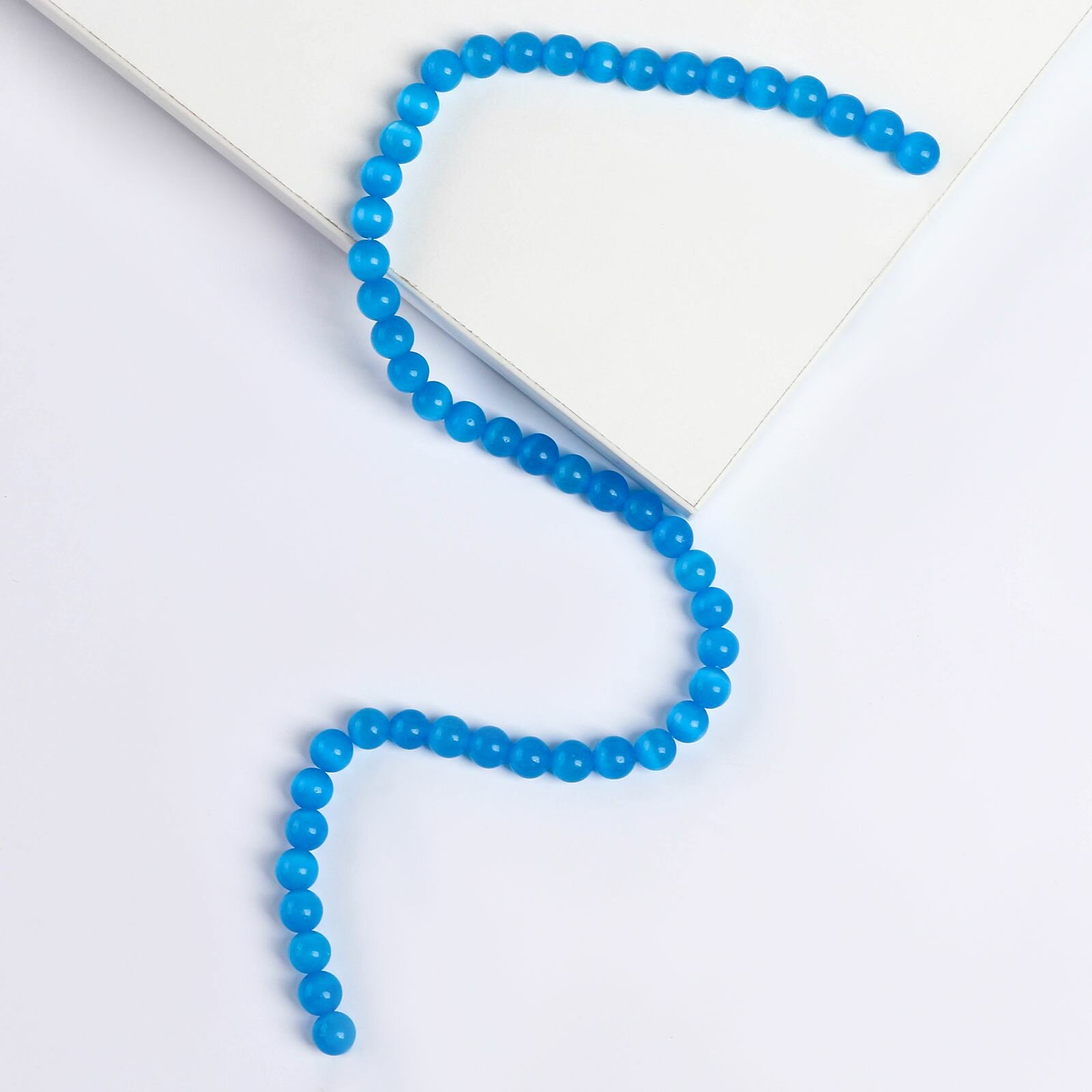 Бусины из натурального камня Кошачий глаз , набор 50 шт,1 шт. 8 мм, голубой 423 ₽