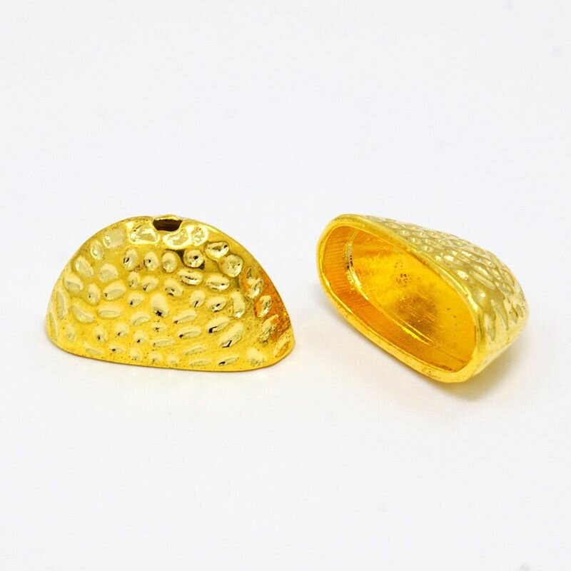 10 цен на Конус, 24х13х11мм (внутренний размер 21.5х9мм), плоский, фактурный, базовый материал - цинковый сплав, цвет золото, 2 шт.
