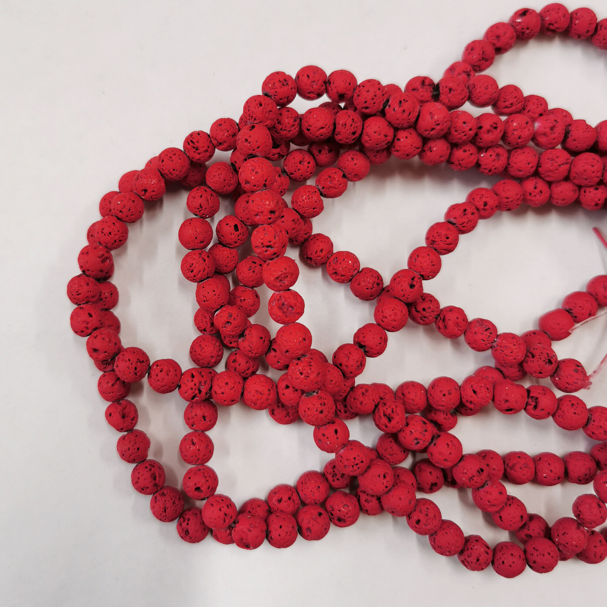 Бусины каменные, вулканическая лава, красная, 6-7мм, 60 шт, низка информация: