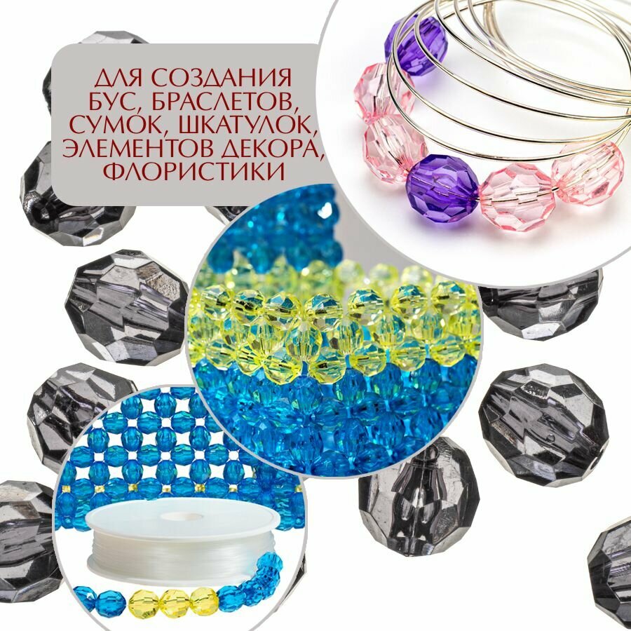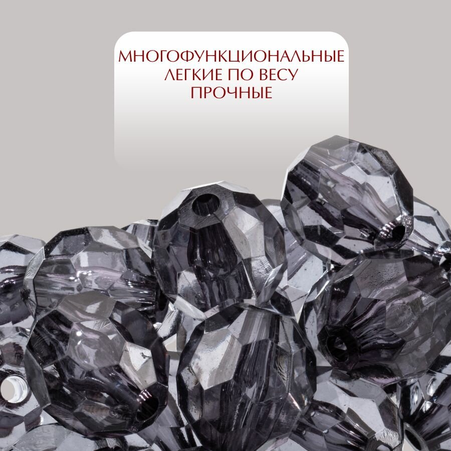 Отзывы на Бусины прозрачные граненые "Шар" 16 мм, темно-серый AD 25, 20 шт. (40 гр.)