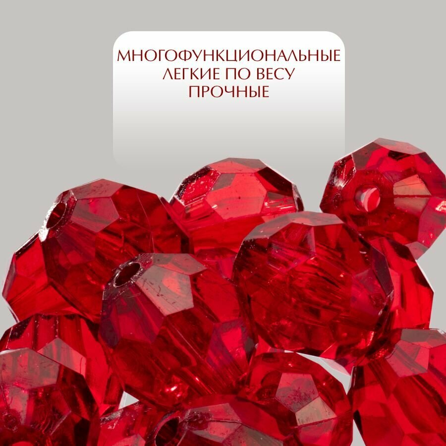 Бусины прозрачные граненые "Шар" 16 мм, алый AD 03, 20 шт. (40 гр.) 348 ₽
