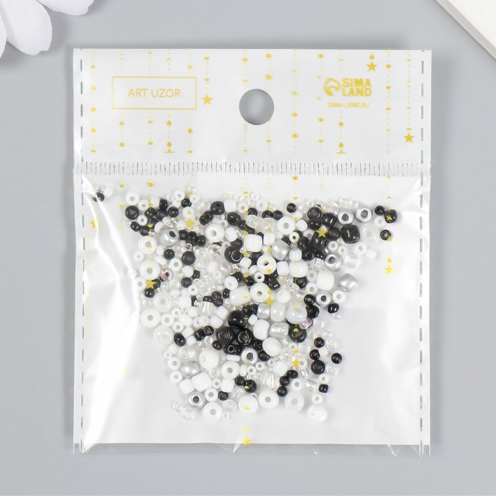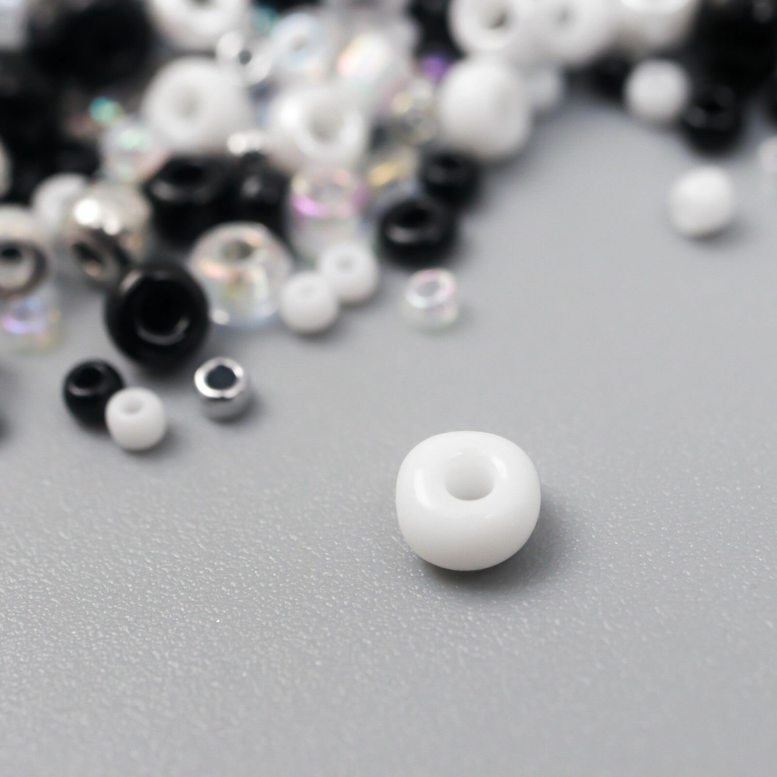 10 цен на Бисер стекло 6/0 - 15/0 "Ассорти чёрно-белое" d 1,5-4 мм, н-р 10гр