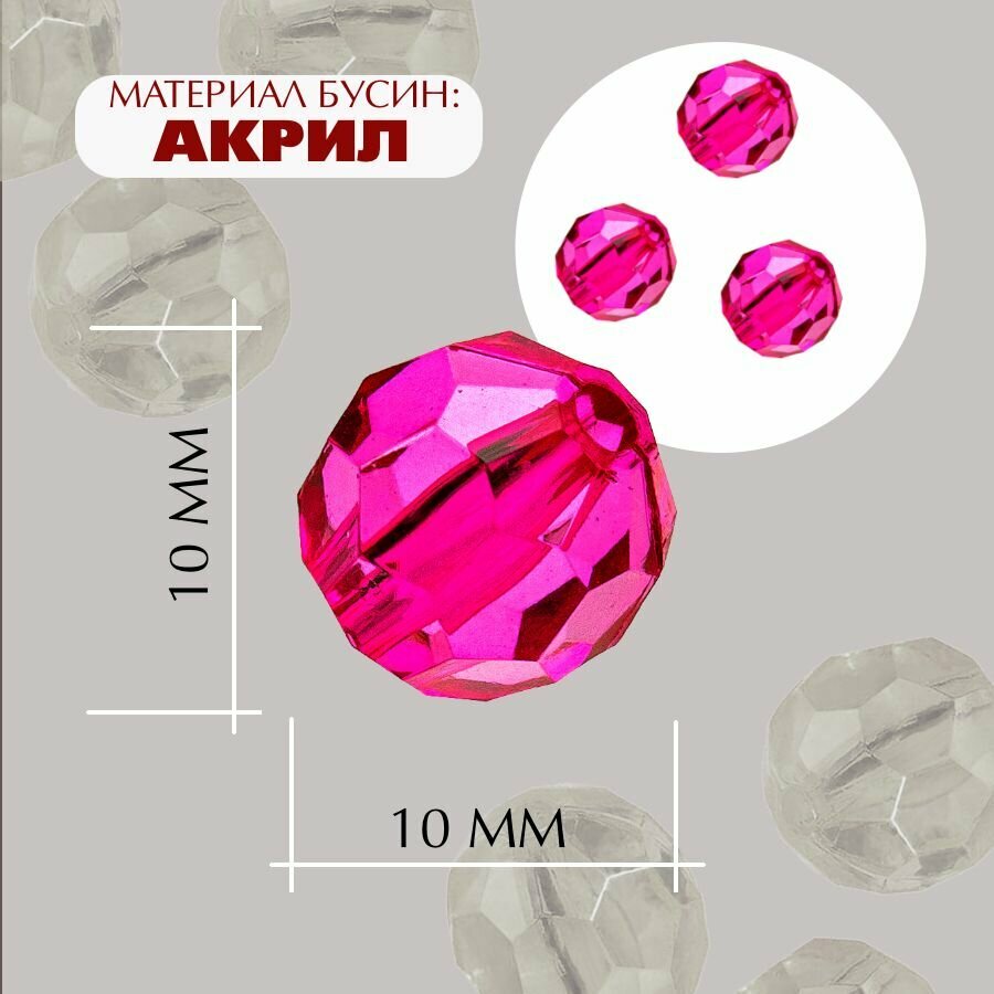 Отзывы на Бусины прозрачные граненые "Шар" 10 мм, малиновые AD 11, 40гр./80 шт.